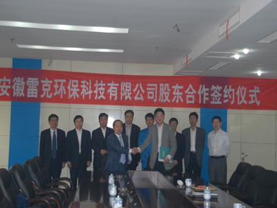 近日,公司董事長兼總經理王兆連一行7人來到安徽省合肥市中科院合肥物質科學院科學島,與合肥物質科學院余增亮老師,安慶新文采置業有限公司吳敬東總經理,就合資成立安徽雷克環??萍加邢薰臼乱诉M行磋商。公司成立后主營:湖泊污染治理,城市景觀水污染治理,工業和生活用水污染治理,氮磷藻磁聚移出浮床的開發研制與銷售。