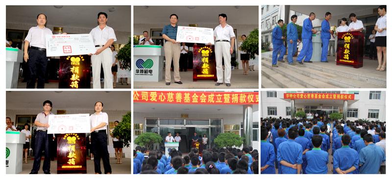8月1日,公司工會、黨支部、團委發起成立華特愛心慈善基金會并舉行捐款儀式。公司各位股東、領導、員工踴躍捐款,其中,臨沂潤興投資有限公司捐款10萬元,公司董事長兼總經理王兆連個人捐款10萬元,公司各位領導、員工捐款5萬余元。在捐款儀式上,王兆連董事長還代表公司愛心慈善基金會向臨朐大陡溝小學捐款2萬元。