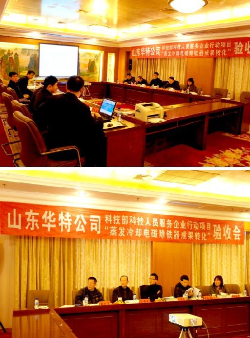 2012年3月4日,受省科技廳委托,市科技局組織專家在濰坊召開了由我公司承擔的“蒸發冷卻電磁除鐵器成果轉化”科技部科技人員服務企業行動項目(2009GJC60005)驗收會。在聽取我公司工作匯報、審查相關材料、經質詢和討論后,驗收專家組認為:項目承擔單位完成了項目任務書規定的各項指標,一致同意通過驗收。
