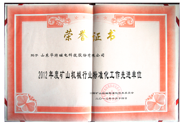 近幾年來,我公司進一步強化了標準化工作,先后加入了全國礦山機械標準化技術委員會、全國磁力材料及設備標準化工作組和煤炭行業(yè)煤礦專用設備標準化技術委員會選礦機械分會等國家標準化組織,主持和參與制(修)定了《超導除鐵器》、《對噴式礦物氣流磨》、《筒輥式永磁強磁選機》、《立盤式永磁尾礦回收機》、《懸掛式電磁除鐵器》、《立環(huán)式電磁感應強磁選機》等國家行業(yè)標準10余項,對于規(guī)范行業(yè)行為,促進行業(yè)技術進步起了積極的推動作用。