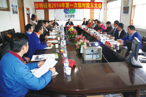 4月26日,山東華特磁電科技股份有限公司召開了2014年度第一次臨時股東大會。公司股東及董事、監事、高管參加會議,董事長兼總裁王兆連主持會議。