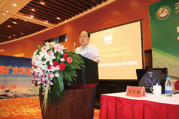 低溫超導(dǎo)磁體產(chǎn)業(yè)技術(shù)創(chuàng)新戰(zhàn)略聯(lián)盟理事長(zhǎng)、公司董事長(zhǎng)兼總裁王兆連在大會(huì)主席臺(tái)就座,并在大會(huì)作了題為《大型化磁電選礦裝備和國(guó)產(chǎn)化超導(dǎo)磁選技術(shù)新進(jìn)展》的學(xué)術(shù)報(bào)告。王兆連董事長(zhǎng)在報(bào)告中,結(jié)合當(dāng)前我國(guó)礦業(yè)發(fā)展形勢(shì),對(duì)我公司新型精選設(shè)備、提精降渣磁選機(jī)等創(chuàng)新產(chǎn)品進(jìn)行了重點(diǎn)推介。王兆連董事長(zhǎng)的報(bào)告得到了與會(huì)者的普遍歡迎并贏得了熱烈的掌聲。會(huì)間,我公司在特裝搭建的VIP展廳與年會(huì)的領(lǐng)導(dǎo)、專家和重大客戶進(jìn)行了深入的溝通、技術(shù)交流和洽談,對(duì)于企業(yè)形象宣傳和新產(chǎn)品推介,擴(kuò)大知名度和影響,促進(jìn)新產(chǎn)品營(yíng)銷推廣,達(dá)到了預(yù)期效果。