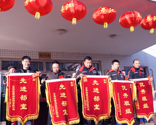 2月8日,公司在辦公樓前廣場召開2014年度工作總結表彰大會。會議由公司常務副總裁劉風亮主持,公司工會主席王學軍宣讀了公司表彰決定。公司領導分別為十佳員工、先進工作者和先進集體頒獎。公司董事長兼總裁王兆連作重要講話,對節日期間安全工作進一步強調,并祝大家新春幸福,萬事如意。
