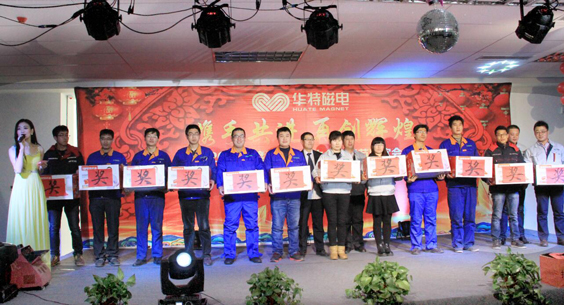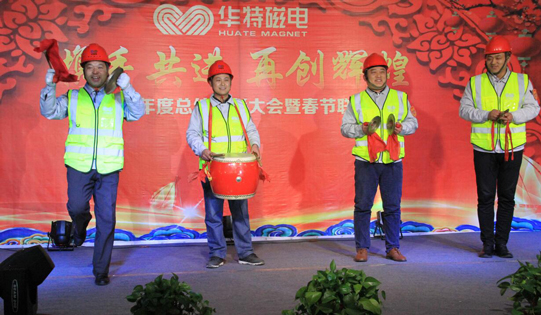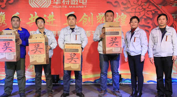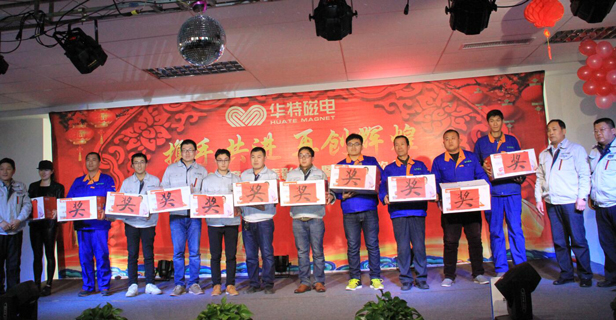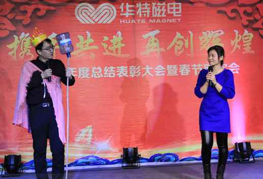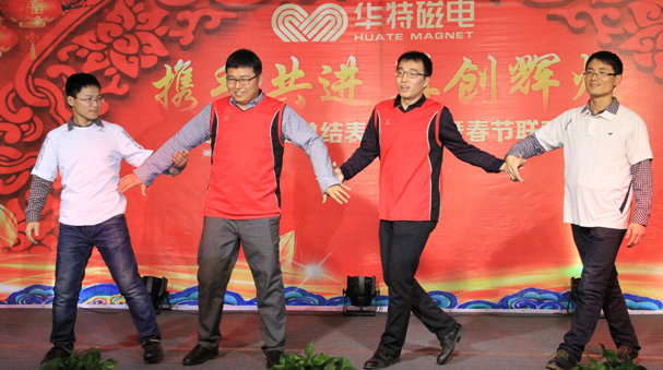 2017年元月20日下午,山東華特公司2017年春節聯歡會在公司二樓餐廳隆重舉行。公司董事長兼總裁王兆連,常務副總裁劉風亮,公司董事、副總裁劉梅,副總裁王建波,公司董事、工會主席王學軍,總裁助理魏黎明、劉西軍,財務總監、董秘孟昭剛,公司監事會主席、總工程師賈洪利及濰坊新力超導磁電科技有限公司常務副總李培勇等全體員工齊聚一堂,繼往開來,其樂融融。
