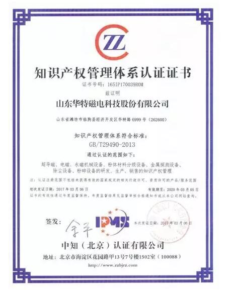山東華特磁電順利通過(guò)知識(shí)產(chǎn)權(quán)管理體系認(rèn)證