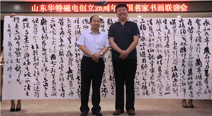 座談會(huì)上,王兆連董事長(zhǎng)代表華特公司各位股東以及全體員工,向出席本次活動(dòng)的各位領(lǐng)導(dǎo)以及書畫界的專家們表示熱烈歡迎。并表示,公司自1993年8月8日創(chuàng)立至今,歷經(jīng)25年風(fēng)霜雪雨,在各級(jí)黨委、政府的大力支持下,在社會(huì)各界的熱情幫助下,在全體員工的不懈努力下,取得了跨越式發(fā)展,由創(chuàng)業(yè)之初的一間辦公室、兩間茅草屋發(fā)展成為知名的磁電裝備制造業(yè)領(lǐng)軍企業(yè)。二十五年的艱辛歷程凝練出了華特特有的,具有旺盛生命力、務(wù)實(shí)、高效、團(tuán)結(jié)的企業(yè)文化。此次聯(lián)誼會(huì)的成功舉辦,是各位書畫名家用精美作品向華特公司25周年華誕獻(xiàn)上的一份精神厚禮,這將作為慶祝“華特創(chuàng)立25周年”宣傳紀(jì)念活動(dòng)的重要組成部分,在公司創(chuàng)新發(fā)展歷程上留下濃墨重彩的一筆。今天有幸借此機(jī)會(huì),同所有的書畫愛好者們,一起分享各位德藝雙馨的書畫藝術(shù)家?guī)淼娜乱曈X體驗(yàn),領(lǐng)略藝術(shù)美的韻味,感受傳統(tǒng)文化的魅力!