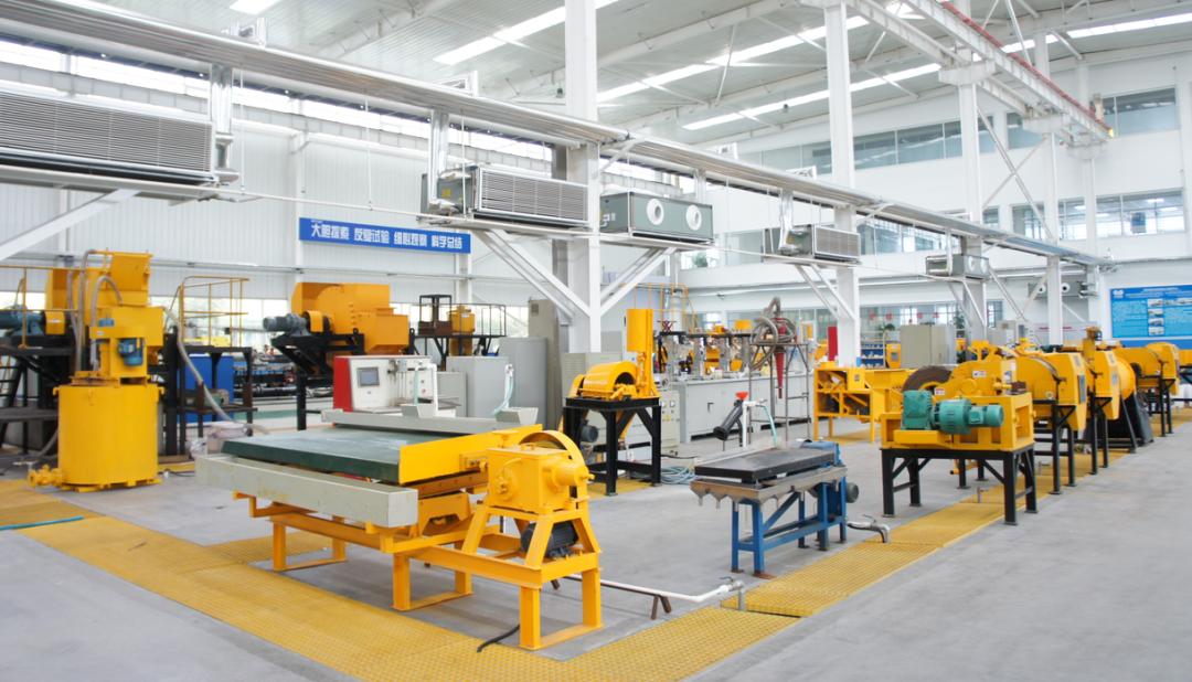 設有磨礦區、磁選區、重選區、浮選區、脫水區和烘干區。在這里可以進行礦物的小樣單機試驗,來確定礦石的可選性和探索出選礦條件。